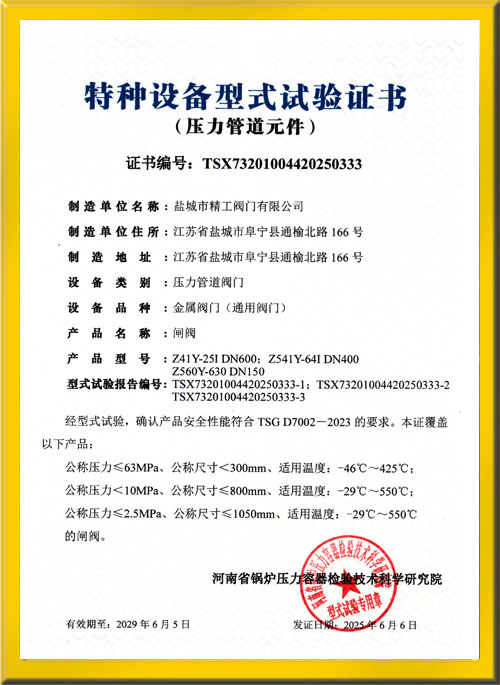 調(diào)節(jié)閥(控制閥)試驗(yàn)證書